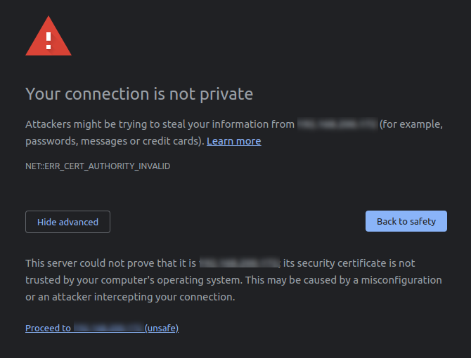 An error message may pop up that the connection is not private. This is because the certificate is self-signed. Please disregard this message and proceed to the URL.