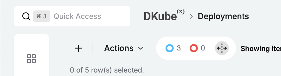Open the Deployments page on your DKubeX workspace. This page lists all the model deployments that are currently running.