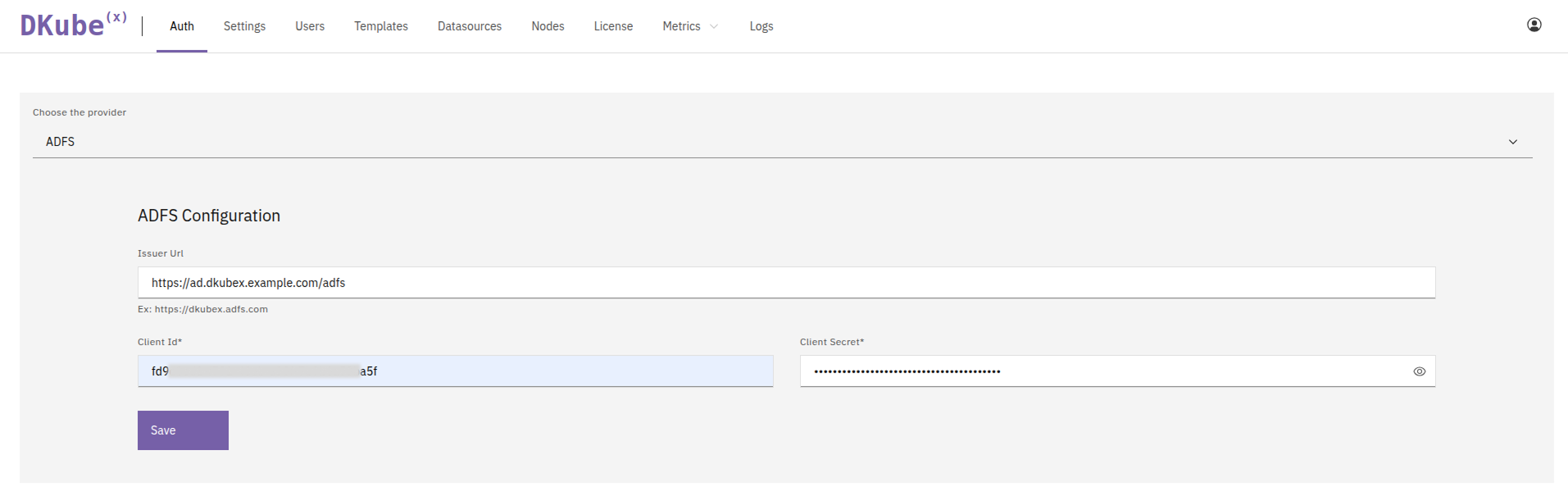 DKubeX currently supports 6 OAuth providers: ADFS, Azure, GitHub, Google, Keycloak, and Okta. You must set up a OAuth application in the respective OAuth provider before configuring OAuth in DKubeX.