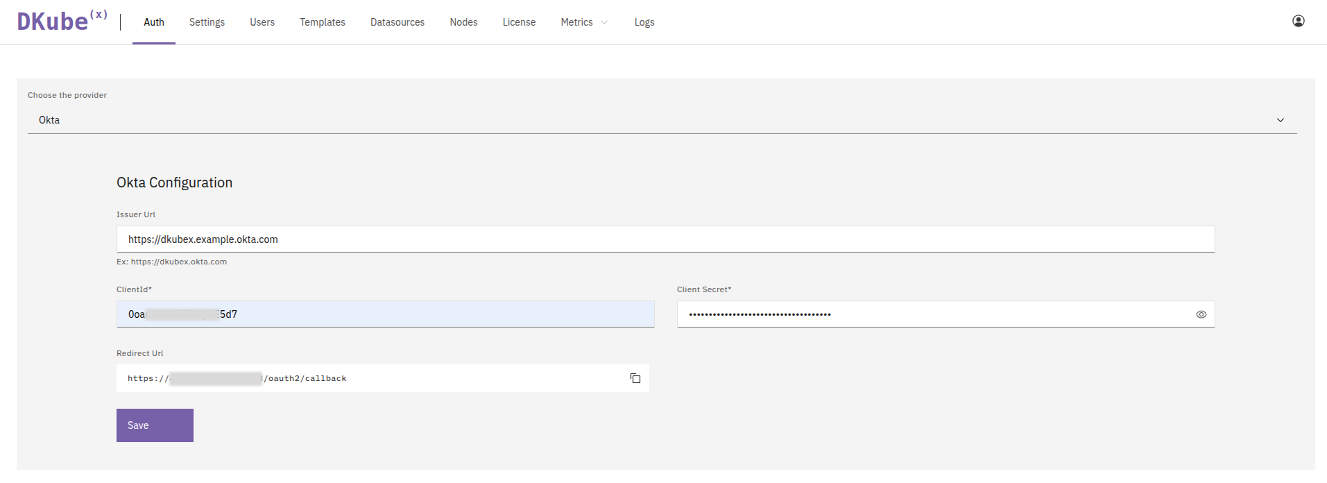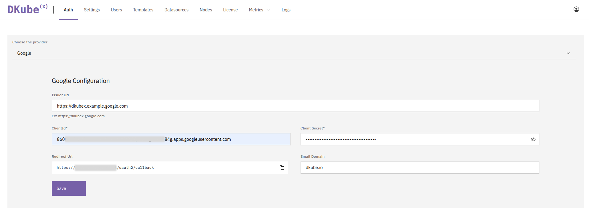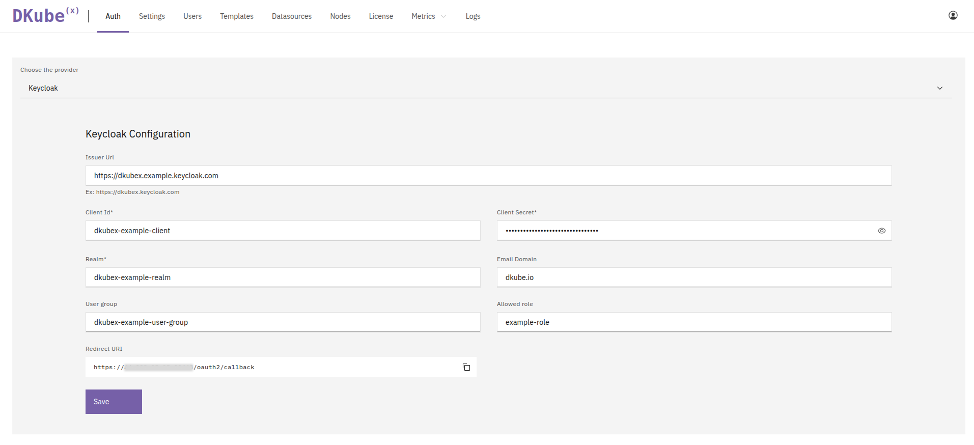 Redirect URLRedirect URL of your DKubeX (cannot be changed).