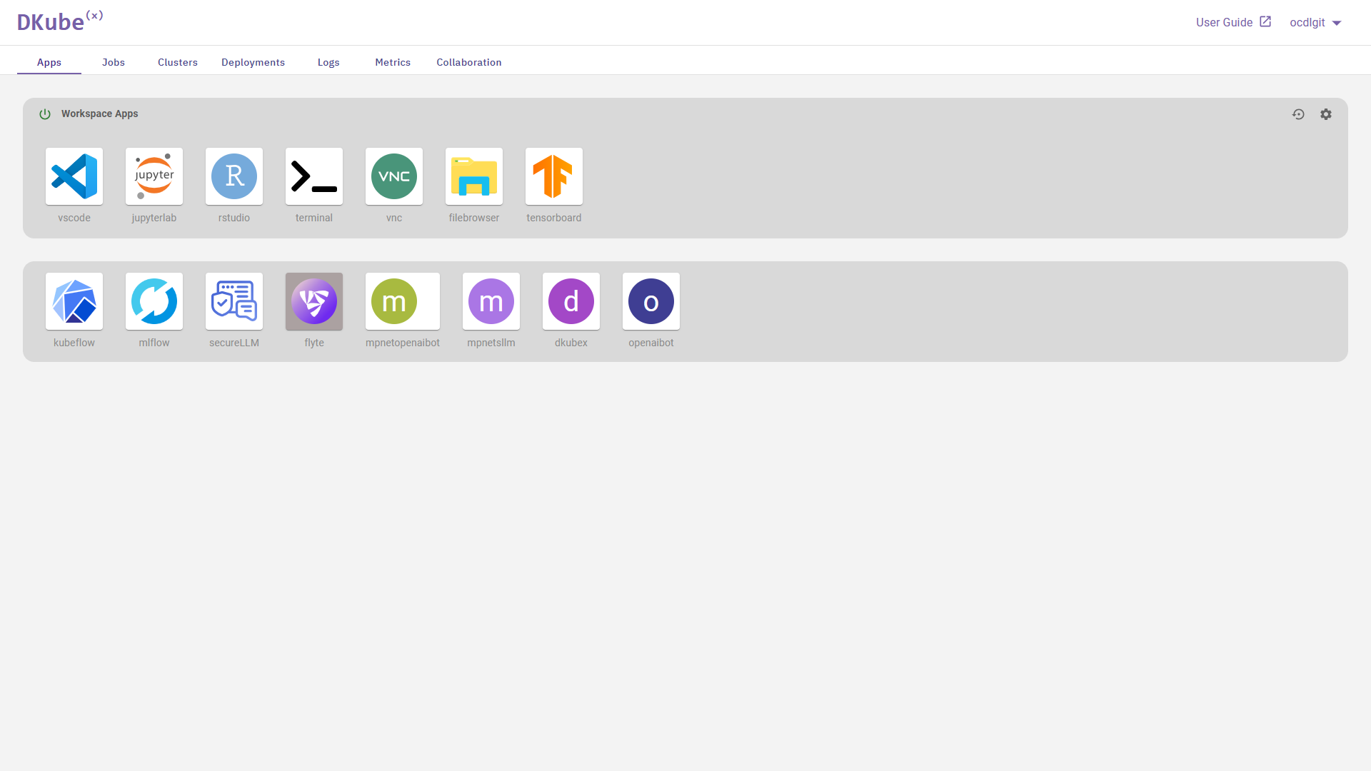 On the Apps tab of DKubeX UI, you will find the SecureLLM app icon in the list of user applications provided. Click on the icon.