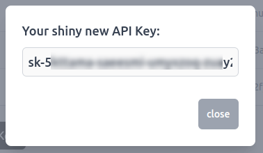 A pop-up window will show up on your screen containing the application key for your new application. Alternatively, you can also access your application key from the list of keys in the Application Key tab.
