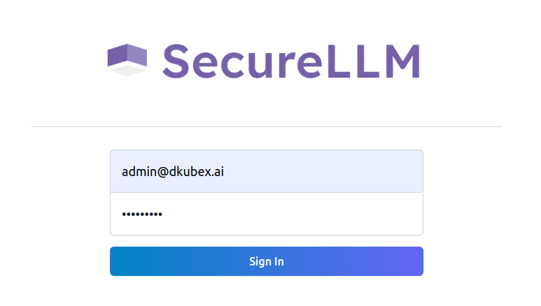 If you do not have the SecureLLM login credentials, please contact your administrator.